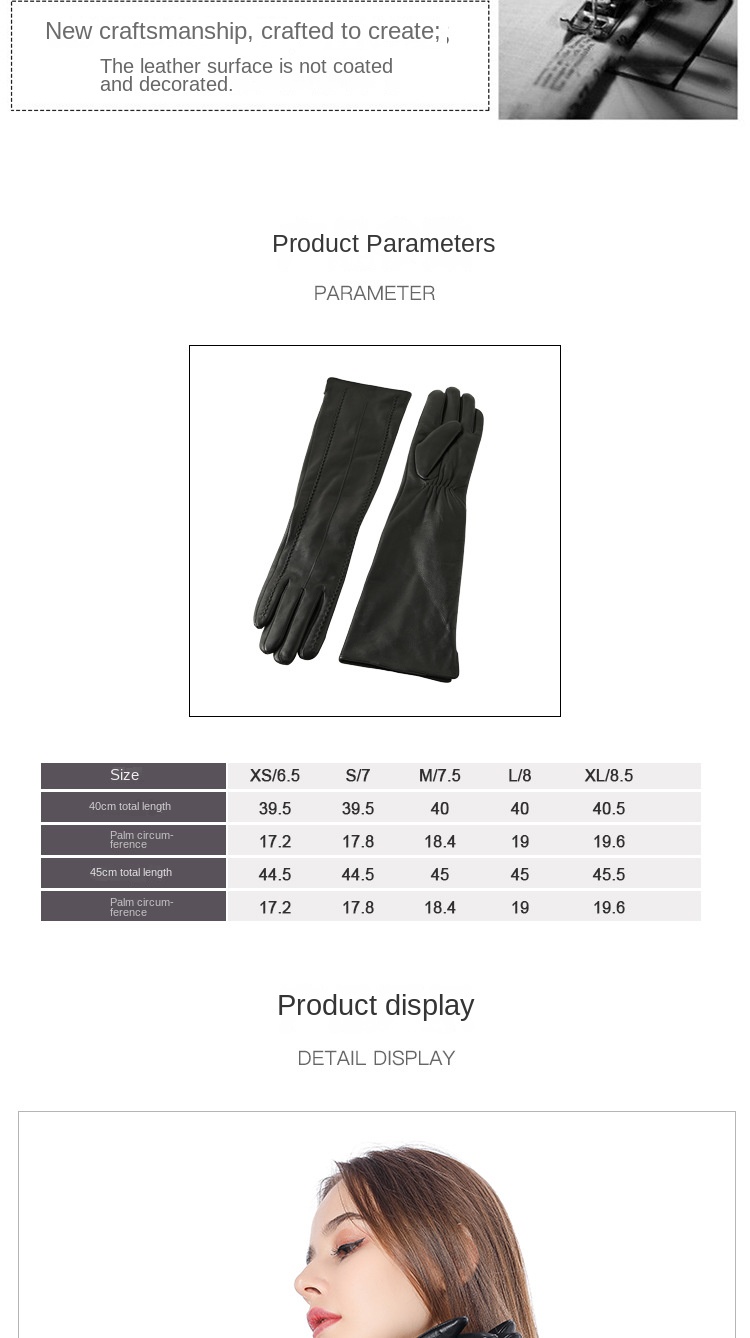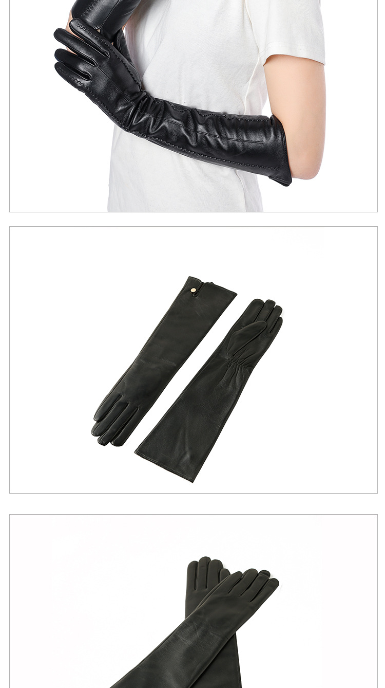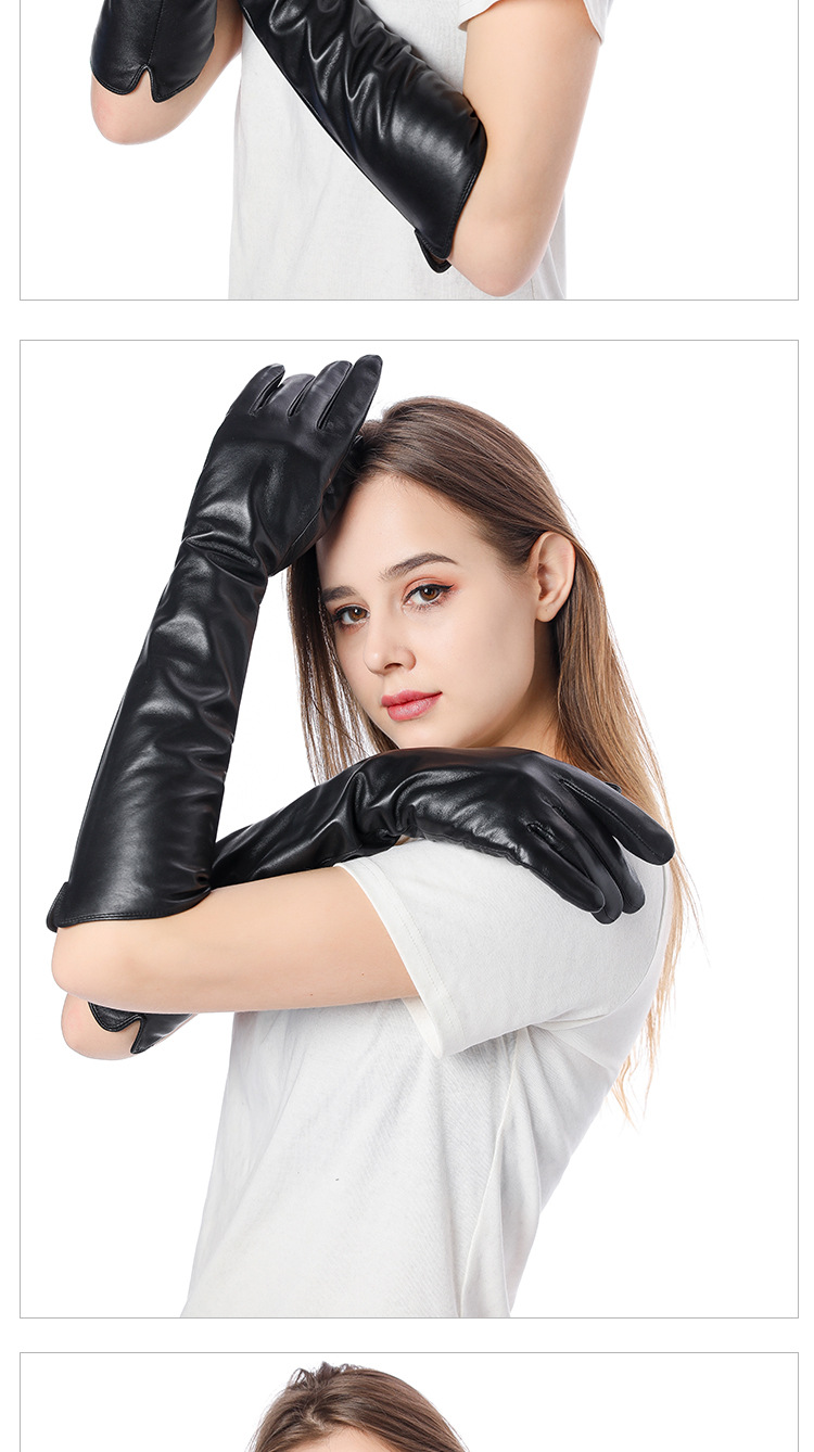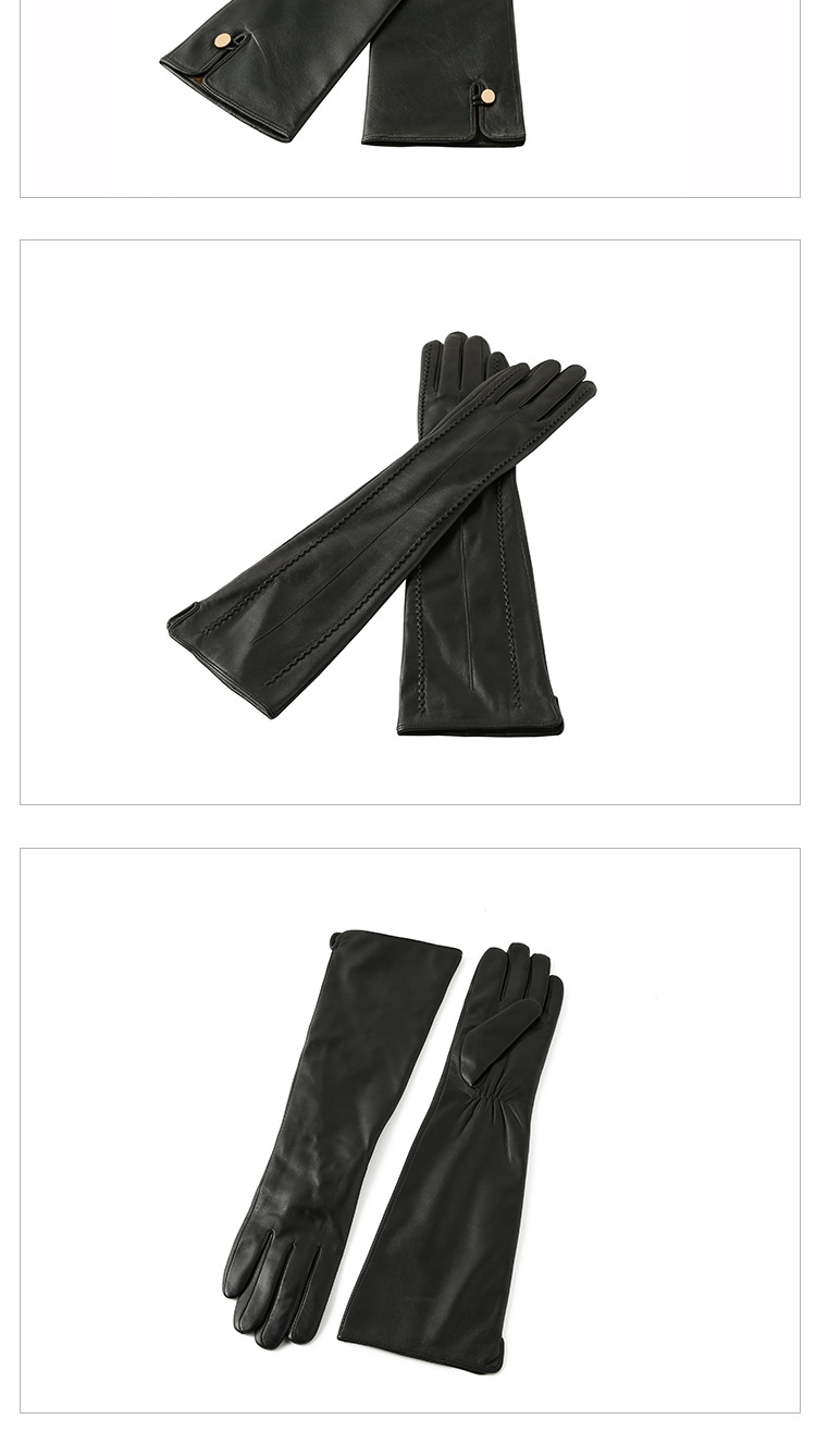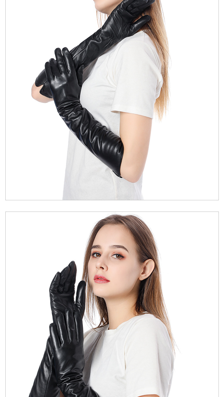 Women's winter long sheepskin leather gloves